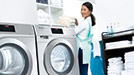 Über ein Full-Touch-Farbdisplay lassen sich die meisten Programme bedarfsgerecht anpassen. Die Bedienung ist je nach Einsatzort und Anwendung in einer umfassenden oder reduzierten Darstellung und in mehr als 30 Sprachen möglich. Regelmäßig benötigte Wasch-und Trockenprogramme können farblich umrahmt werden, sodass Fehler bei der Benutzung nahezu ausgeschlossen sind.