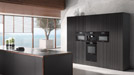 Miele-Einbaugeräte im VitroLine-Design, hier in der Farbe Graphitgrau: Das Ensemble aus Combi-Dampfgarer, Kaffeevollautomat, Kompakt-Backofen mit Mikrowelle (v.l.) plus zwei Wärmeschubladen und eine Vakuumierschublade (jeweils untergebaut) lässt keine Wünsche offen. |