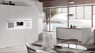 Ganz in Brillantweiß: Dieses Geräteensemble aus Dialoggarer, Kaffeevollautomat, Backofen (v.l.) und untergebauter Wärmeschublade gehört zur Designlinie VitroLine. Alternativ gibt es dieses Set auch in den Farben Graphitgrau und Obsidianschwarz. |