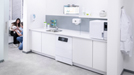 Damit kranke Haustiere bestmöglich versorgt werden, ist in veterinärmedizinischen Praxen eine sichere und hygienische Aufbereitung aller ärztlichen Instrumente unabdingbar. Miele Professional bietet dafür neue Untertischgeräte der Serie „ExpertLine“ an – hier mit einer Edelstahlfront. (Foto: Miele) |