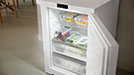 Der Platz in kleinen Kühlschränken ist begrenzt – umso wichtiger ist eine durchdachte Nutzung des vorhandenen Raums. Deshalb stattet Miele die neuen Modelle mit FlexiBoard aus, einem verstellbaren Glasboden. Der vordere Teil des Bodens lässt sich nach hinten verschieben. Damit ist Platz für hohe Gefäße wie zum Beispiel Karaffen. Die Gefriergeräte stehen dem in Nichts nach, denn hier ist es möglich, die Schubladen zu tauschen oder zu entnehmen, um auch größeres Gefriergut lagern zu können (VarioRoom). Sollen größere Mengen eingelagert werden, sorgt die SuperFrost-Funktion dafür, dass die Lebensmittel schnell und schonend eingefroren werden.