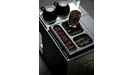 Unterhalb des Bohnenbehälters portioniert ein rotierendes Modul die Bohnen der Wahl und führt diese dem Mahlwerk zu. Das neue Kegelmahlwerk aus Stahl verrichtet sein Werk leiser und aromaschonender als Mahlwerke aus Keramik. Weil es direkt über der Brüheinheit positioniert ist, landet die vorher ausgewählte Kaffeesorte von Tasse zu Tasse immer frisch dort (AromaticSystemFresh).