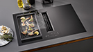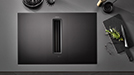 Schwarze Oberflächen sind im Innendesign eine feste Größe. Auch in Küchen wirkt Schwarz elegant und zeitlos. Vor allem in offenen Wohnkonzepten setzen schwarze Einbaugeräte in hellem Interior starke Akzente oder fügen sich bei dunklen Farbtönen harmonisch in das Gesamtbild ein. So sind Induktionskochfelder mit schwarzer Glaskeramik nichts Ungewöhnliches, doch das neue Kochfeld mit integriertem Dunstabzug setzt hier mit seinem konsequenten All-Black-Design neue Maßstäbe.