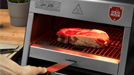 Vielfach verstellbare Oberhitzegrill bietet mit stufenlos regelbaren Temperaturen bis zu 900 °C besten Steakgenuss