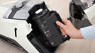 Letzterer ist in einem separaten Filterbehälter im Inneren des Gerätes untergebracht und bleibt bei der Entleerung außen vor. Der Filter seinerseits ist mit einer sensorgesteuerten ComfortClean-Selbstreinigung ausgestattet, die für konstanten Luftdurchsatz sorgt. Bei normalem Gebrauch ist der leicht entnehmbare Filterbehälter etwa ein- bis zweimal pro Jahr unter fließendem Wasser auszuspülen, worauf der Nutzer zu gegebener Zeit und ebenfalls sensorgesteuert hingewiesen wird.