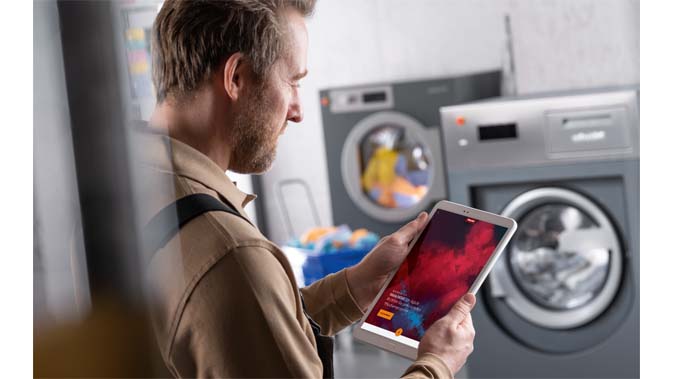 Vernetzungsfähige Miele-Wäschereimaschinen ermöglichen eine Kontrolle der Betriebsdaten über mobile Endgeräte – und können nicht nur gekauft, sondern auch gemietet oder geleast werden. (Foto: Miele)