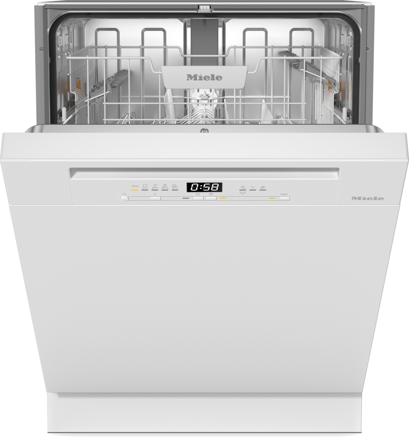 - 6.Während der Entwicklungsphase der Geschirrspülerserien G 5000 und G 7000 hat Miele Modelle & Kernkomponenten mit 5.600 Spülgängen (= 280 Spülgänge im Jahr über einen Zeitraum von 20 Jahren) in div. Programmen getestet. Mehr unter: miele.com/20years