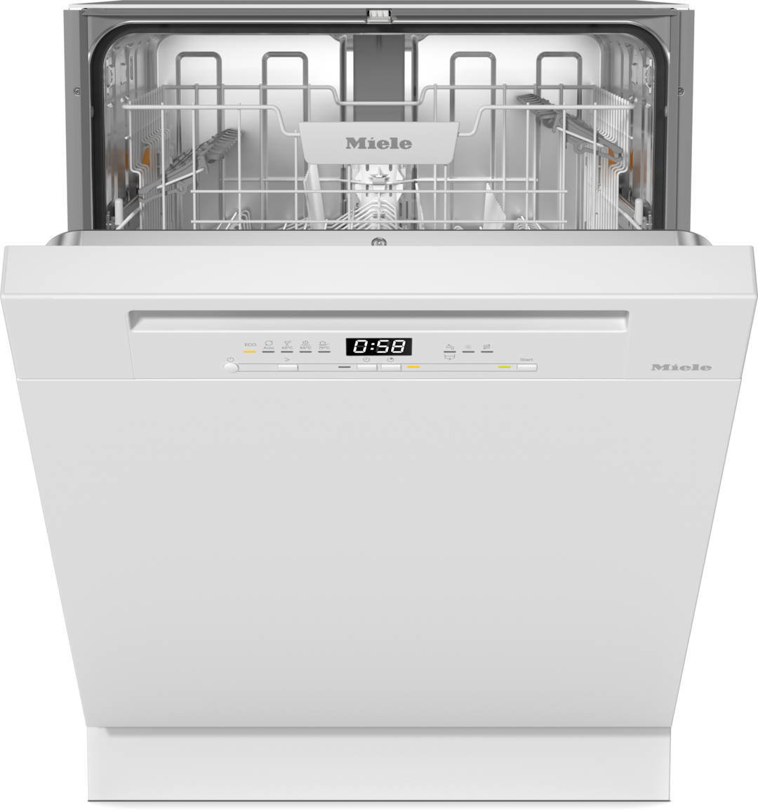 - Dank Startvorwahl können Sie den Spülbeginn bis zu 24 h im Voraus bestimmen
