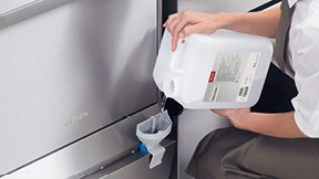 Die Kanister werden maschinell verschlossen. Ein händisches Öffnen wird damit fast gänzlich unmöglich, so dass Miele einen Kanisterschlüssel als Zubehör anbieten wird. Der Kanisterschlüssel eignet sich zum Öffnen von 5 und 10 l Kanistern sowie der 12kg Gebinde.