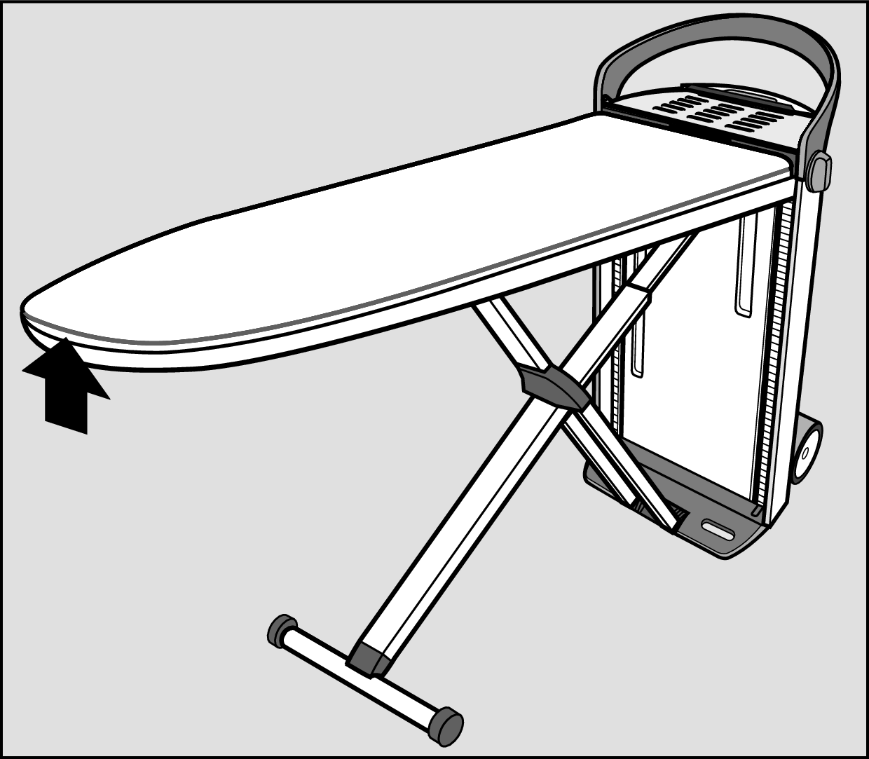 Schieben Sie den Verschluss wieder in den Hohlraum an der Spitze des Bügeltisches.